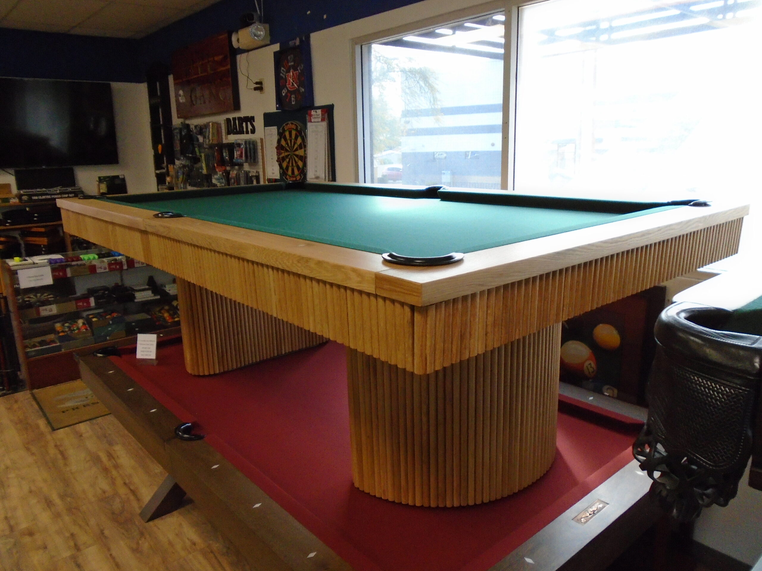 The Washington pool table is a masterpiece of craftsmanship, handcrafted from reeded American White Oak. Its bold vertical reeded enhances the wood’s natural beauty, while the gracefully curved silhouette of the legs adds a touch of sophistication. A perfect blend of classic elegance and modern design, the Washington table makes a striking statement in any space. Reflecting the latest innovations in high-end furniture design, this table seamlessly combines timeless artistry with contemporary luxury.